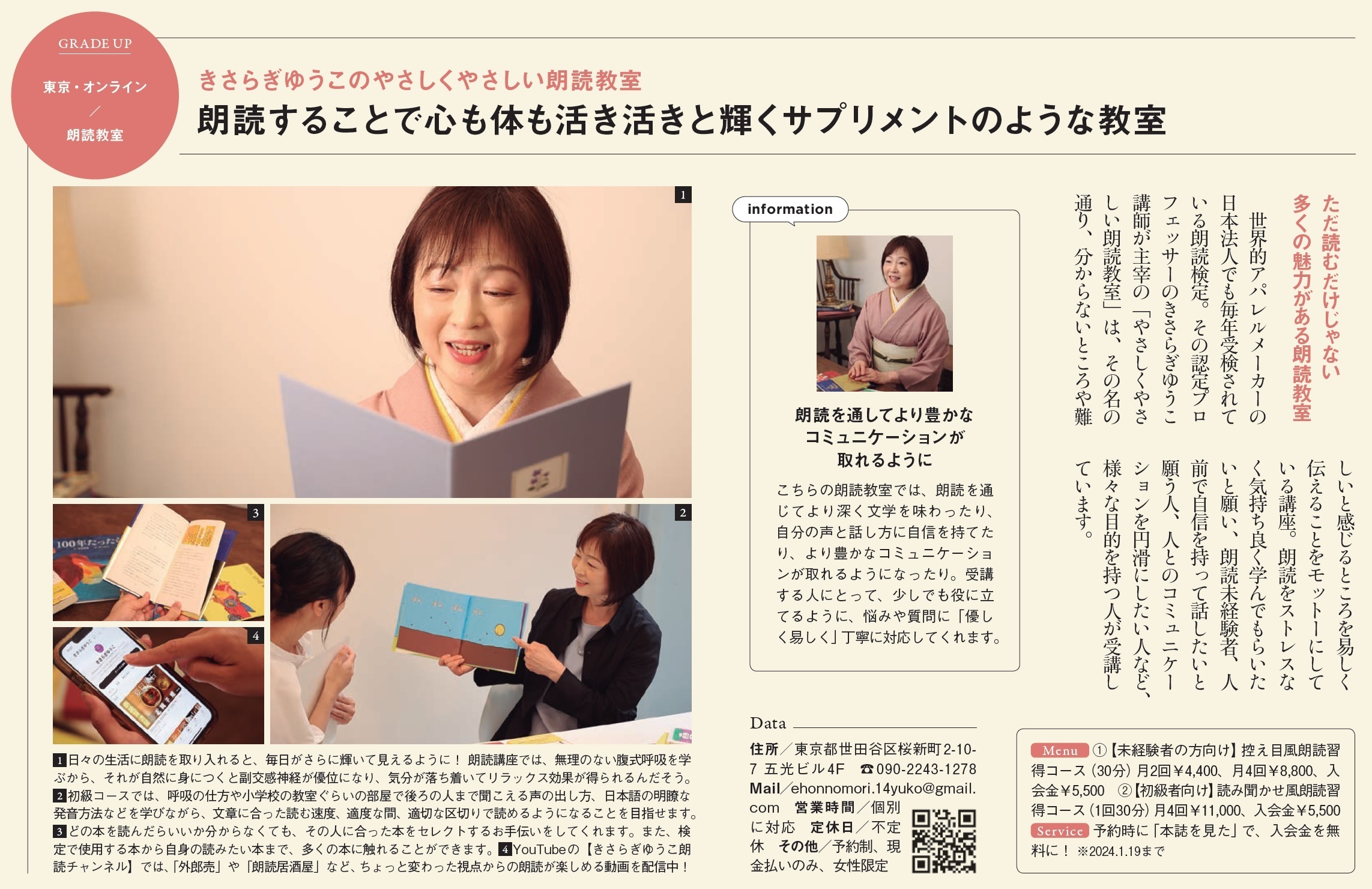 【未経験者向け】控えめ風朗読習得コース(30分/回) 朗読をしたことがない、未経験者の方向けのコースです。朗読する上で重要な、基礎になる呼吸の仕方、小学校の教室ぐらいの部屋で後ろの人まで聞える声の出し方、日本語の明瞭な発音方法などを学びながら、文章に合った読む速度、適度な間、適切な区切りで読めるようになることを目指すコースです。学ぶことを厳選し30分という短時間できめ細かなマンツーマン指導をします。初めての方向けになりますので、児童文学作品など、芥川龍之介や宮澤賢治、太宰治の作品でも比較的わかりやすい作品をセレクトしています。個人差はありますが目安としては3~4ヶ月で修了するのが平均的です。サンプル音源 https://youtu.be/sH1idl1tKO0